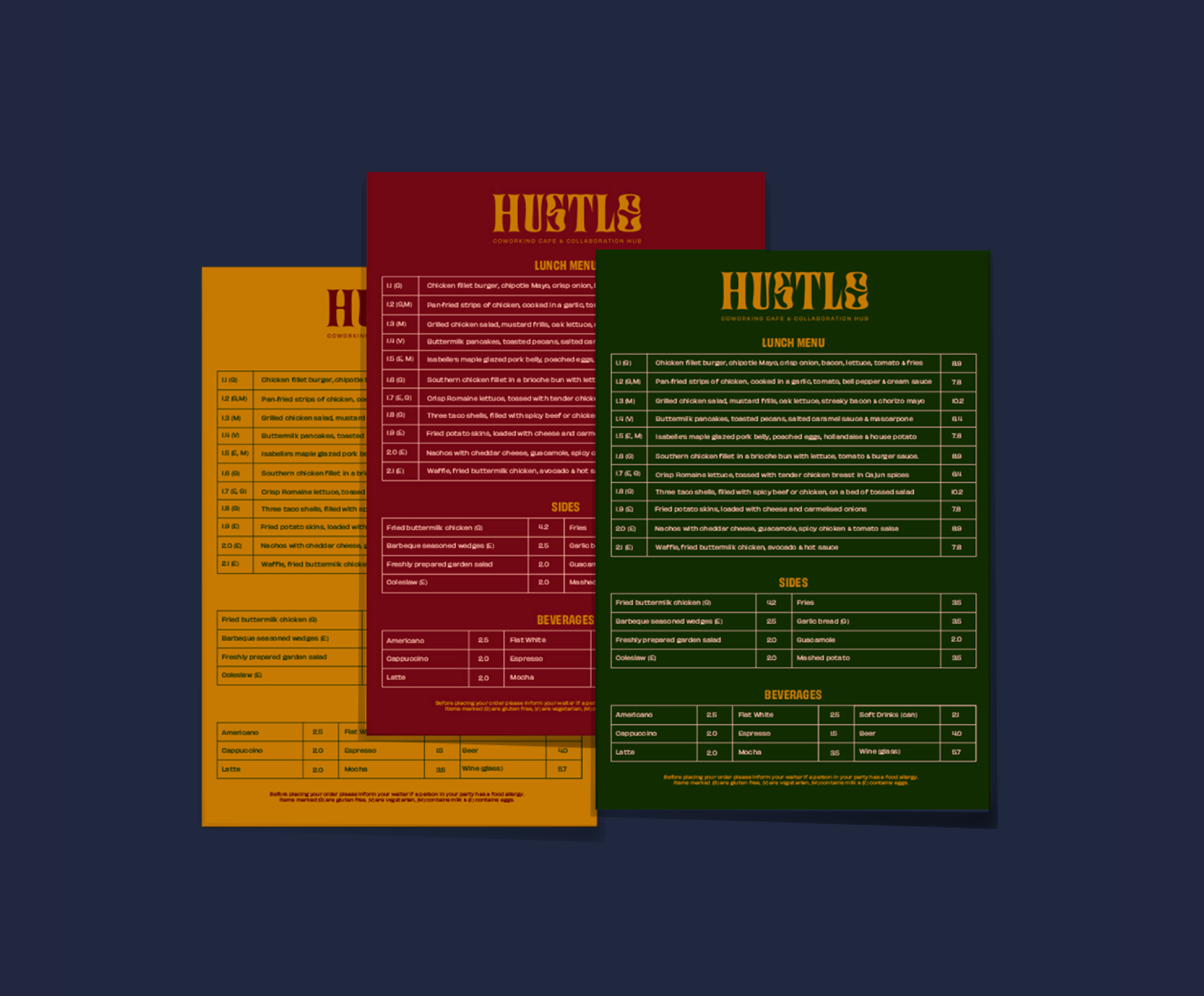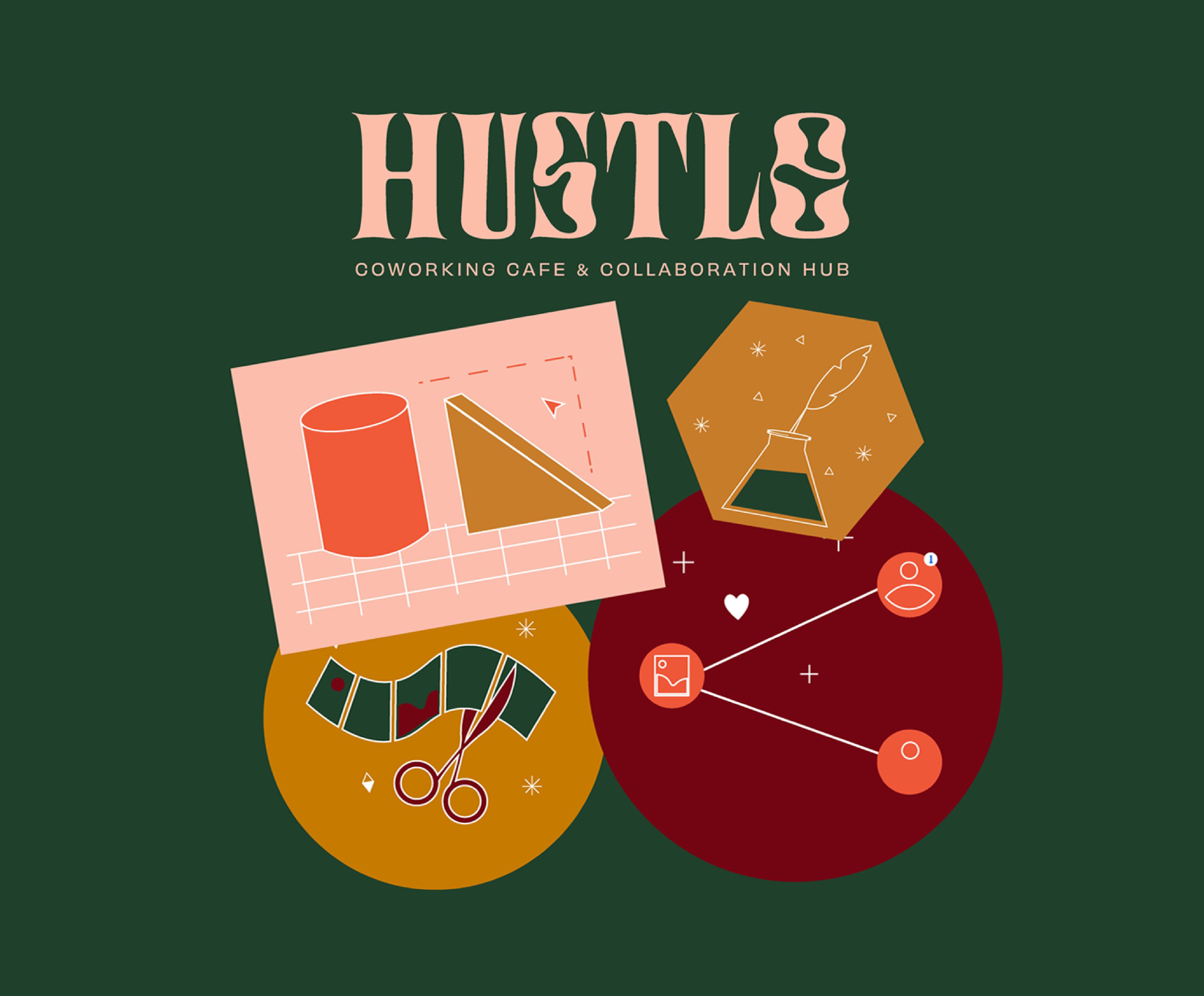 Hustle is a co-working space and cafe that welcomes freelancers and entrepreneurs looking to grow their business. It offers an customers opportunity to connect and collaborate with like-minded professionals. Hustle uses an earthy colour palette that is welcoming and comforting & encourages togetherness and collaboration with its warm and inviting hues.Designed with Claire Dillon.