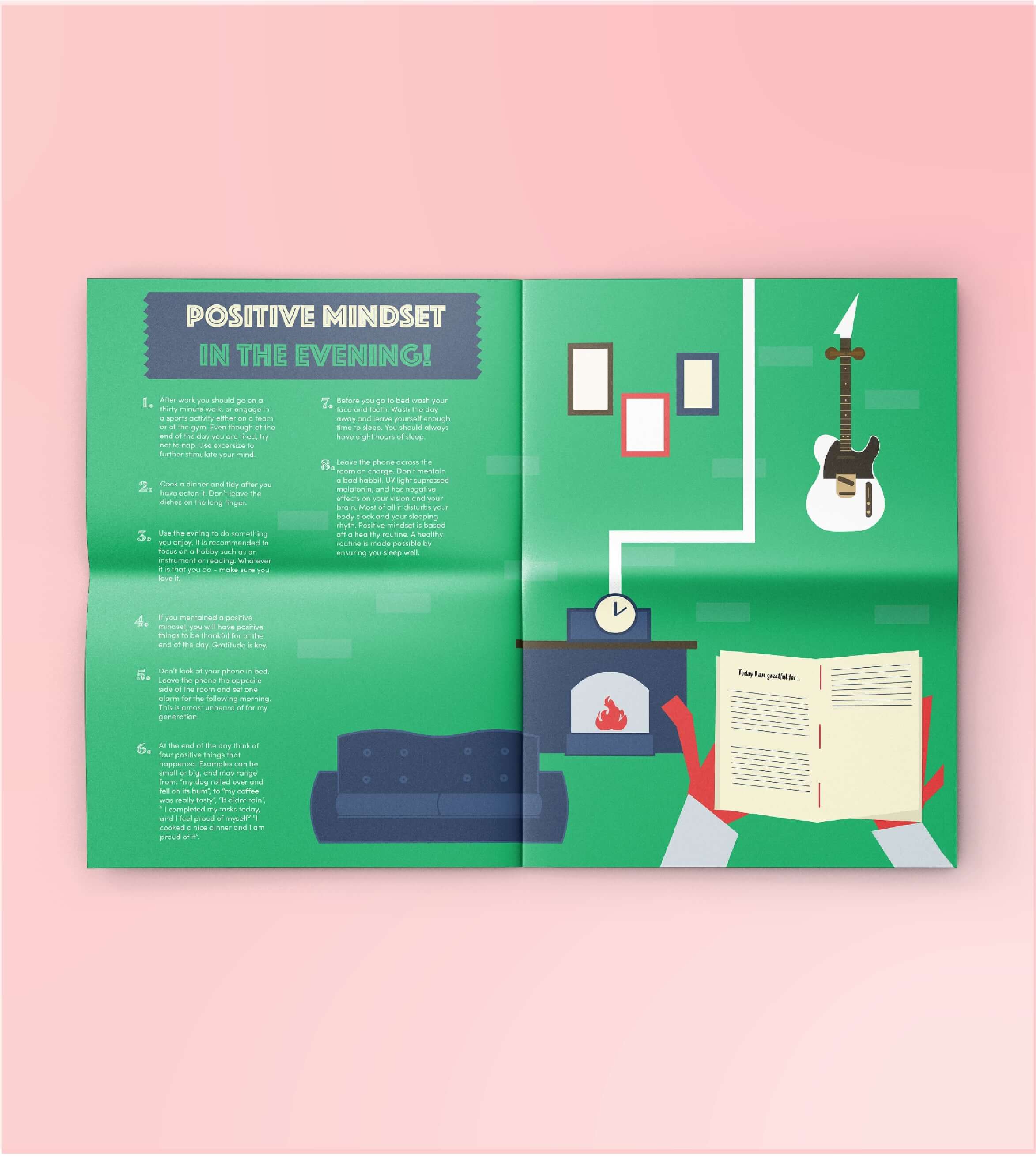 This paper offers practical tips and guidelines, that can be easily incorporated into our daily routine, helping us achieve a positive mindset and promoting healthy behaviours that enhance our well-being. Topics discussed include: how to practice a positive morning routine, work day, and evening routine. This paper includes A3 and A4 typographic posters that can be pulled from the editorial and displayed.